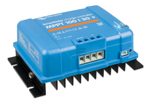 Victron Energy SmartSolar MPPT 100/30 ir saules lādētāja kontrolieris ar MPPT funkciju, paredzēts 30 A uzlādes strāvai un līdz 100 V PV ieejai. Tas optimizē saules paneļu darba punktu, pārvalda akumulatora uzlādi un nodrošina efektīvu enerģijas konversiju un aizsardzību. Piemērots beztīkla sistēmām, kemperiem vai mazākām instalācijām, kur nepieciešama uzticama akumulatoru pārvaldība.